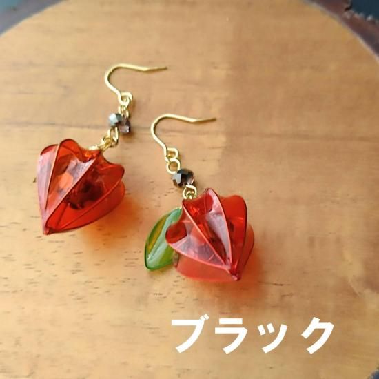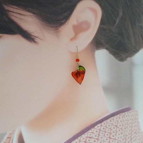 鬼灯2(ほおずき) 着物におすすめ イヤリング(ピアス) 和 ゆらゆら 揺れる デザイン 和装 ノンホールピアス 浴衣 こっくり 秋