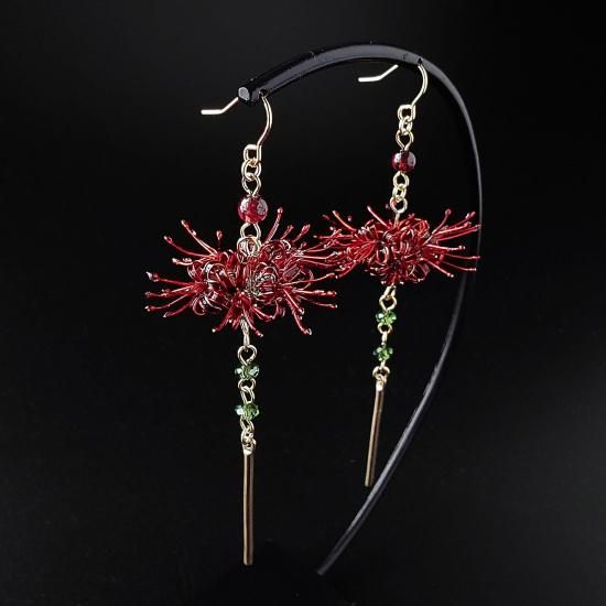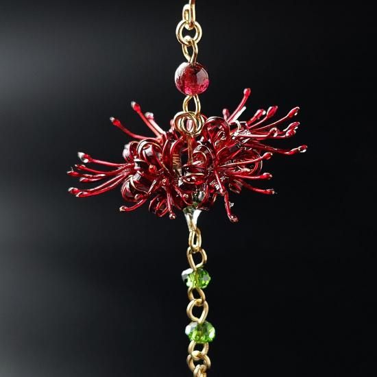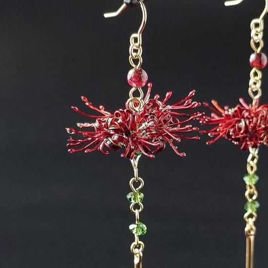 鮮烈な赤の彼岸花をモチーフに、天然石ガーネットをあしらった耳飾りです。